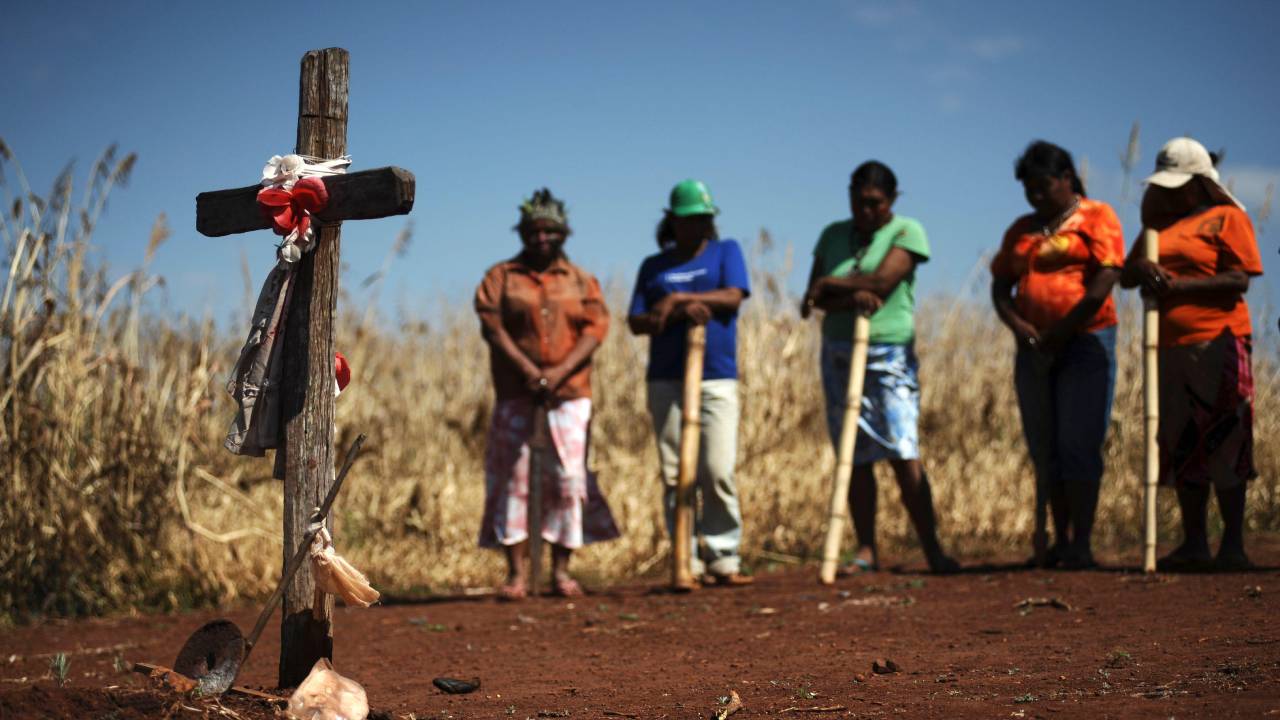 Guarani Kaiowá people in Mato Grosso do Sul, Brazil, mourn the killing of a community member by a farmer.