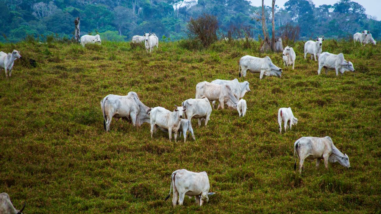 Cattle grazing on deforested land in the Amazon.