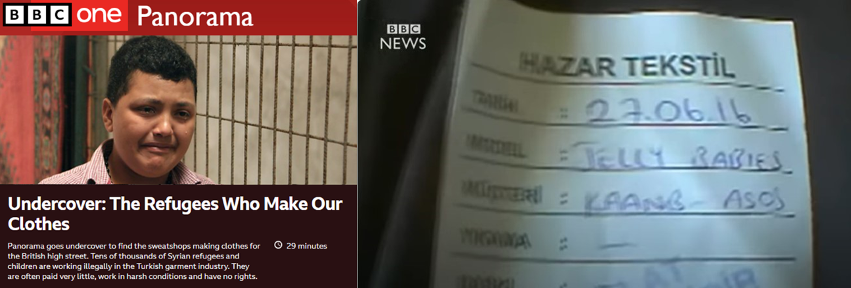 A BBC investigation in 2016 found Syrian refugee children working producing clothing for Turkish firm Hazar Tekstil