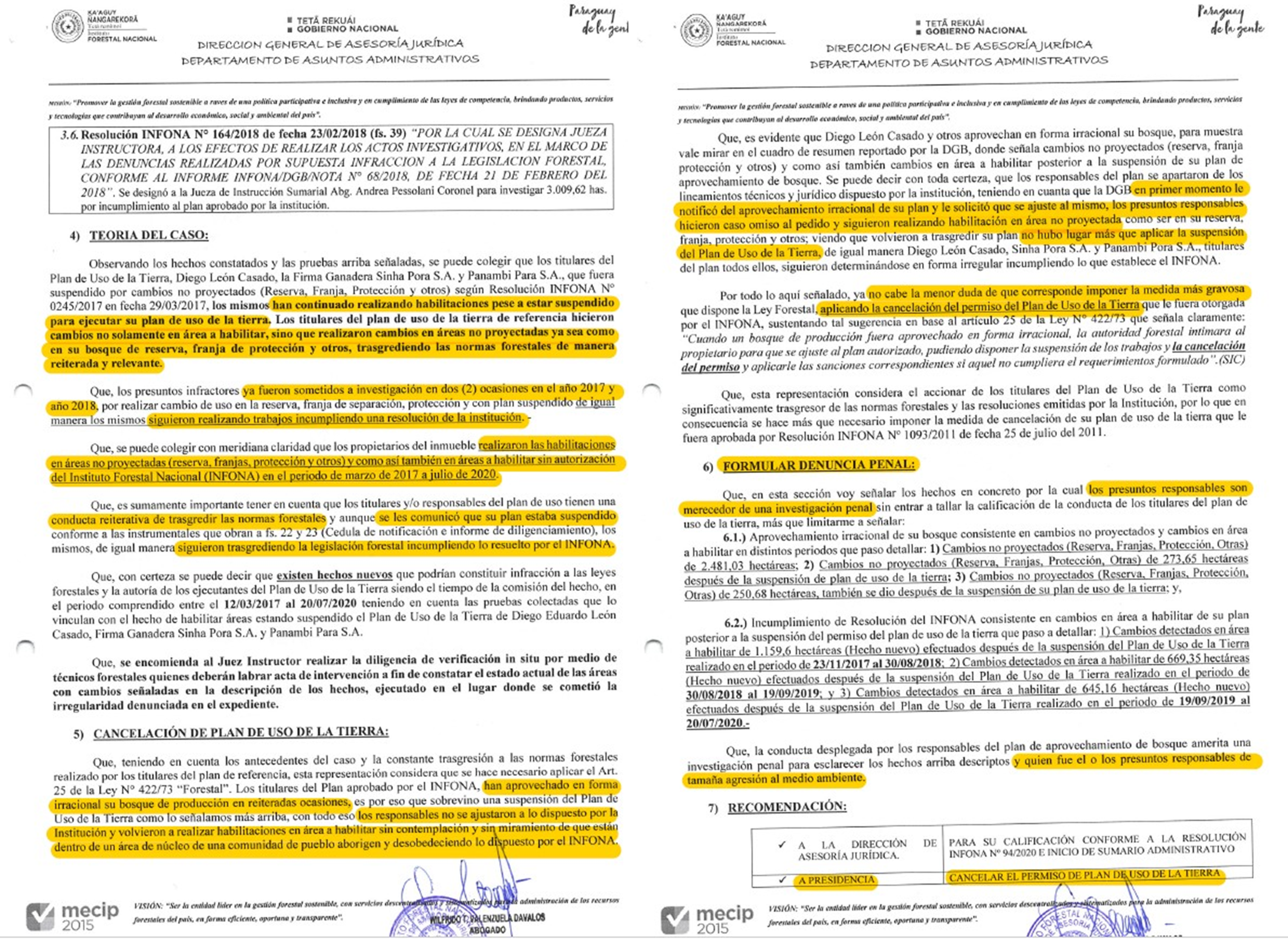 After analysing Infona’s and Mades’ responses to the Senate, as well as additional documents obtained under freedom of information requests, Earthsight and Paraguayan media outlet El Surtidor can reveal for the first time the actions, inactions and omissions at the heart of the Paraguayan government’s response, or lack thereof, to the illegalities uncovered by Earthsight.