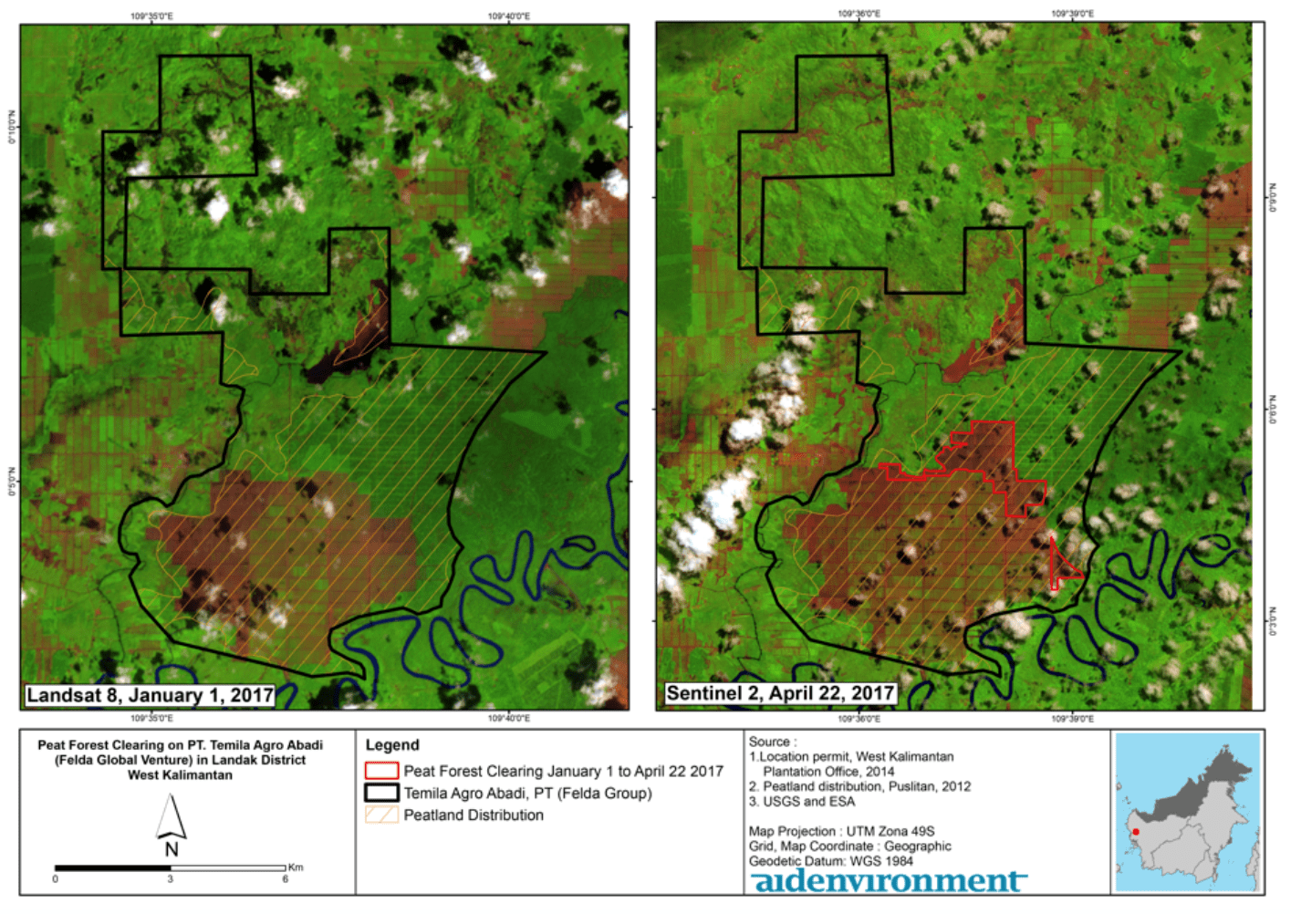 FGV subsidiary PT Temila Agro Abadi allegedly clearing peatland January 1, 2017 to April 22, 2017.