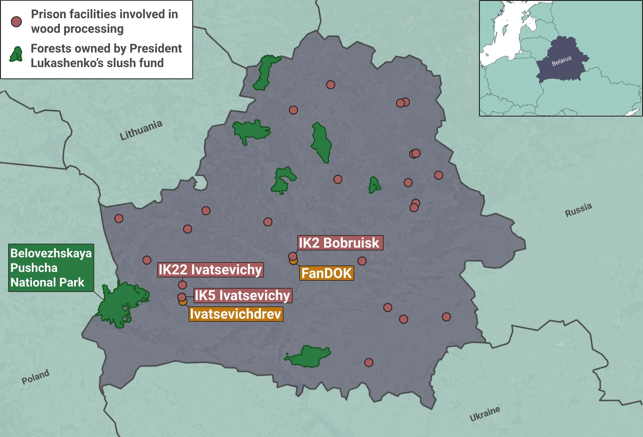 In a report published by Earthsight in November 2022, ‘Rubber-stamping Repression,’ we revealed how the Belarusian furniture sector is closely connected to the country’s many penal colonies, where prisoners work under archaic conditions. We also showed its links to the abuse and torture of political prisoners in the country, as well as to logging in protected areas. We showed how many Belarusian prisons had been awarded spurious sustainability credentials by international certification scheme Forest Stewardship Council, which effectively licensed these furniture products for sale on the EU market for years before the invasion.