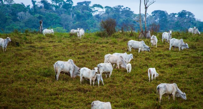 Cattle on pasture on deforested farm - Amazonia, Brazil