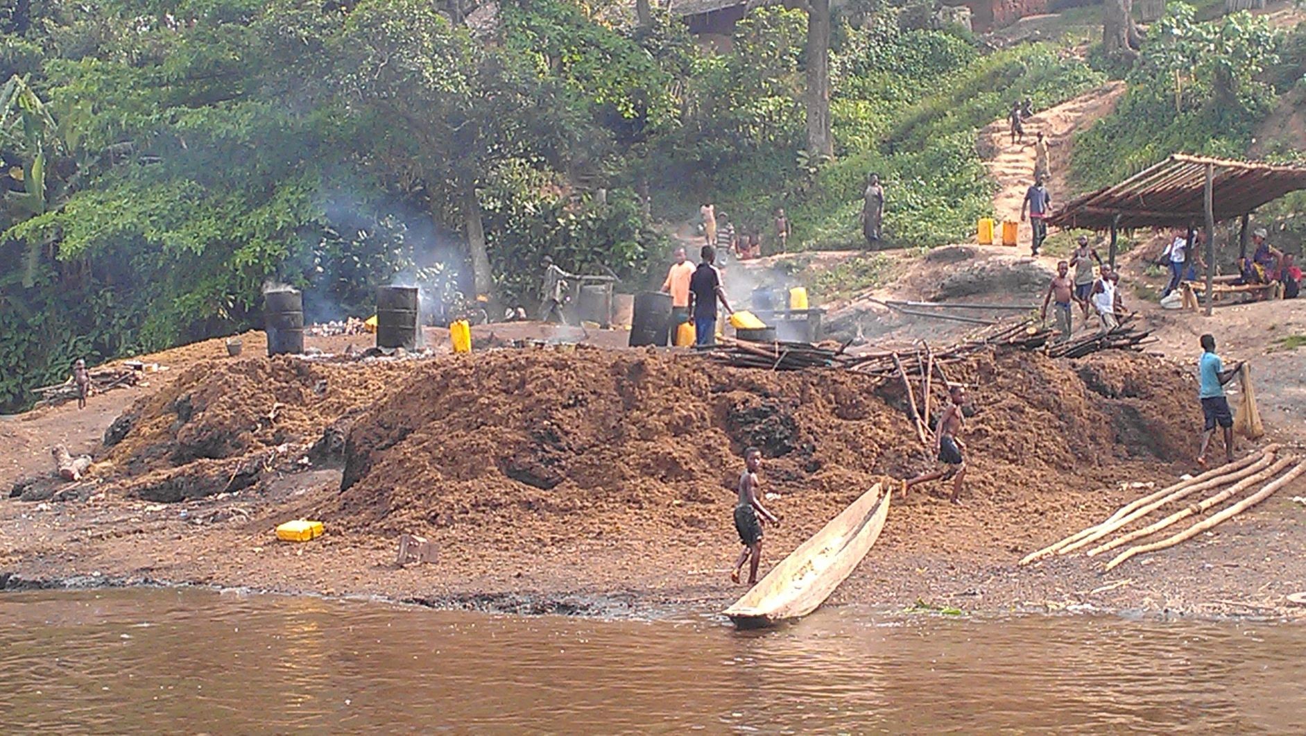 Traditional palm oil extraction at a village near a Feronia plantation in DRC.