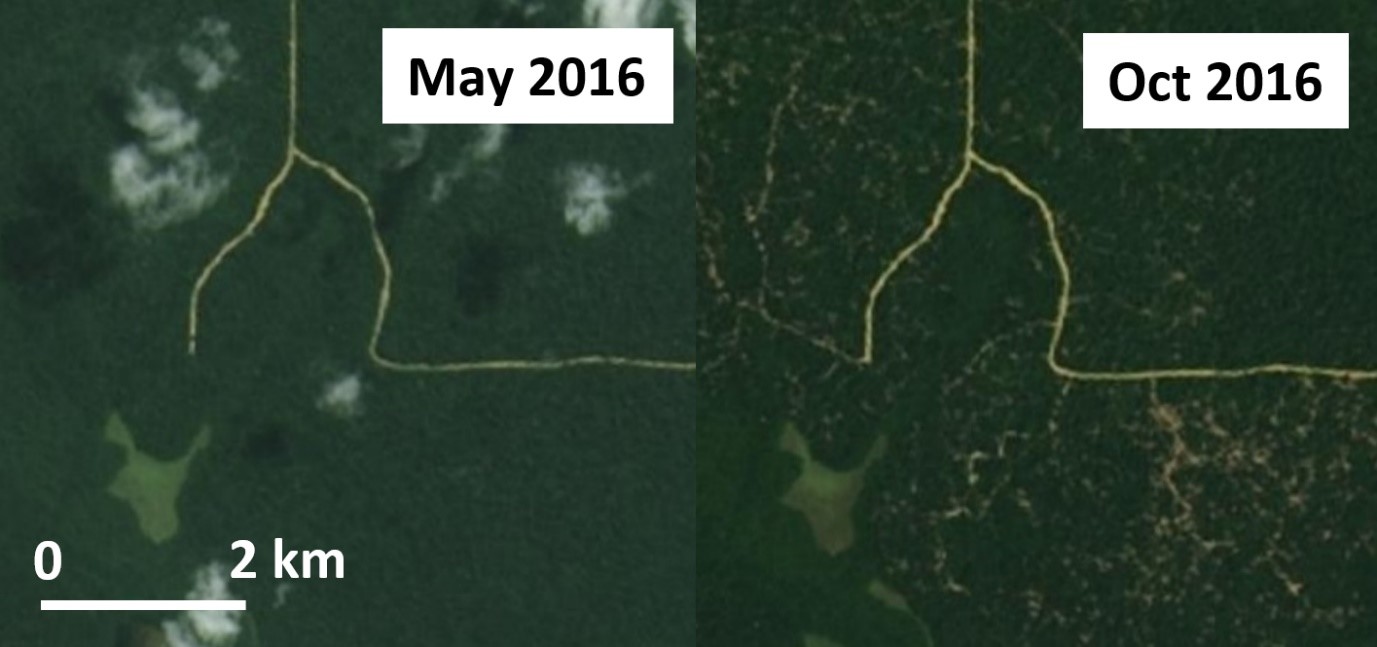 early 2017, satellite images show Atama was illegally logging 25 football