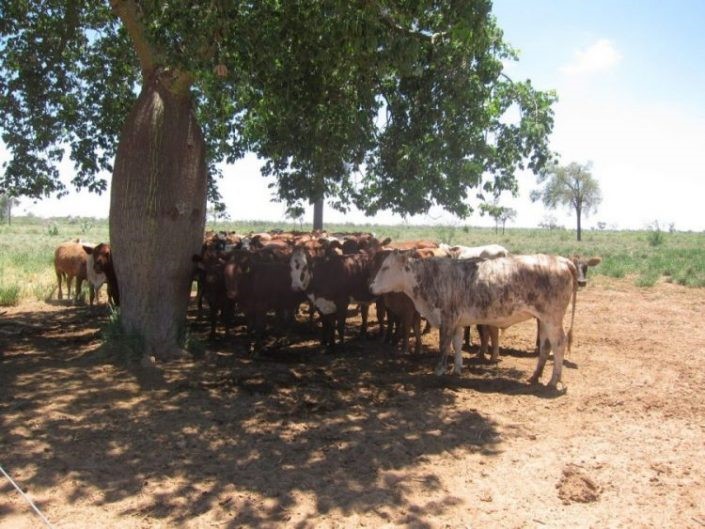 Cattle cluster beneath the shade of a samu'u tree on deforested land in the Paraguayan Chaco