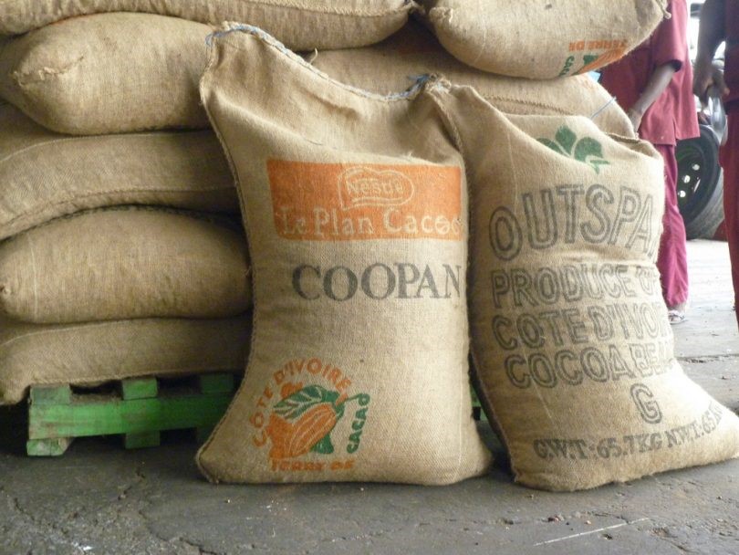 Cocoa sacks awaiting transportation from Ivory Coast