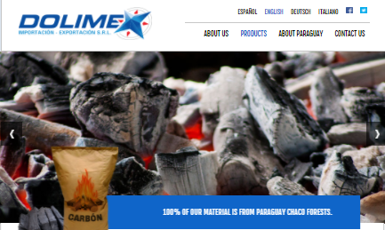 Webpage of Paraguayan charcoal exporter Dolimex, advertising that the products come from Chaco forests.