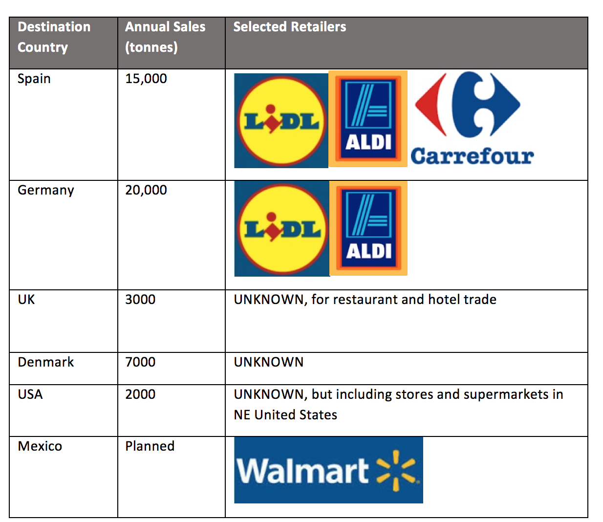 The EU is by far the largest destination for Paraguayan charcoal exports, with the US also a significant importer. The importance of the EU as a market for Paraguayan charcoal has been growing rapidly. Ten years ago, 20 percent of exports were destined for the EU.[26] In the first three months of 2017, it was more than 70 percent.[27] Germany and the UK are the largest buyers of Paraguayan charcoal. During early 2017, some 22,000 bags of Paraguayan charcoal were entering Germany every day, and 5,000 were arriving in the UK.[28] Paraguay is the largest source of charcoal imports to Germany, and one of the top three for the UK.[29] Earthsight estimates that as many as 30-football pitches of Paraguayan Chaco forest are being cleared every day to supply Europe with charcoal.[30] Most charcoal being sold in supermarkets in Europe and the US, or used in restaurant and hotel chains, is supplied by EU and US distributors. These companies order charcoal from overseas, where it is packaged by the supplier in the distributors’ own branding, or that of their customers. While the products on the supermarket shelves rarely identify the true origin, many of these distributors openly advertise that their products are made from Quebracho sourced from Paraguay. The Paraguayan companies that supply them also advertise this fact. They also commonly provide information on their websites about their overseas buyers. For example, Dolimex, one of the top four Paraguayan exporters in 2016, boasts on its homepage that “100% of our raw material comes from the forests of the Paraguayan Chaco, where there are [sic] an abundance of high density species such as the quebracho blanco.”[31] Dolimex’s website includes pictures of bags of charcoal destined for two major UK importers/distributors, Big K and Fuel Express,[32] whose charcoal is distributed through thousands of independent shops and through petrol station chains across the UK. When asked to respond by Earthsight, Big K confirmed that it sources charcoal from Dolimex and that the raw materials come from clearance of land for cattle farming, but stated that it is their understanding that this is “bush land”.[33] They later also referred to it as “farmland”.[34] They declined an opportunity to deny their supplier’s claims that the land concerned is within the Chaco or that the raw materials are quebracho blanco trees. Fuel Express did not respond to Earthsight’s requests for comment.Ramón Jiménez Gaona, Paraguayan Minister of Public Works and major shareholder of leading Paraguayan charcoal exporter, speaking to the press about sustainable development in March 2017.