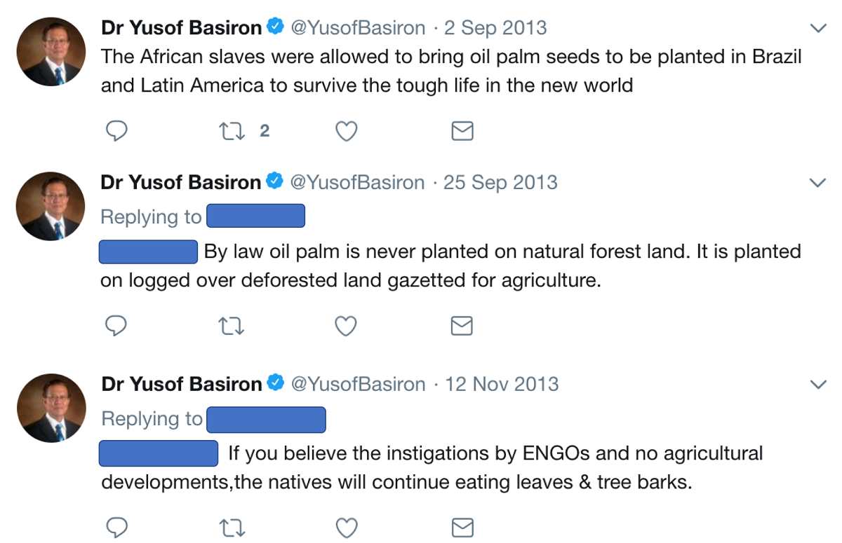 Yusof Basiron uses his Twitter feed to rail against critics of the palm oil industry, on occasion using misleading or inaccurate information.