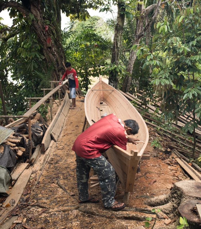 Villagers building a boat in Gunung Mas, 2017.