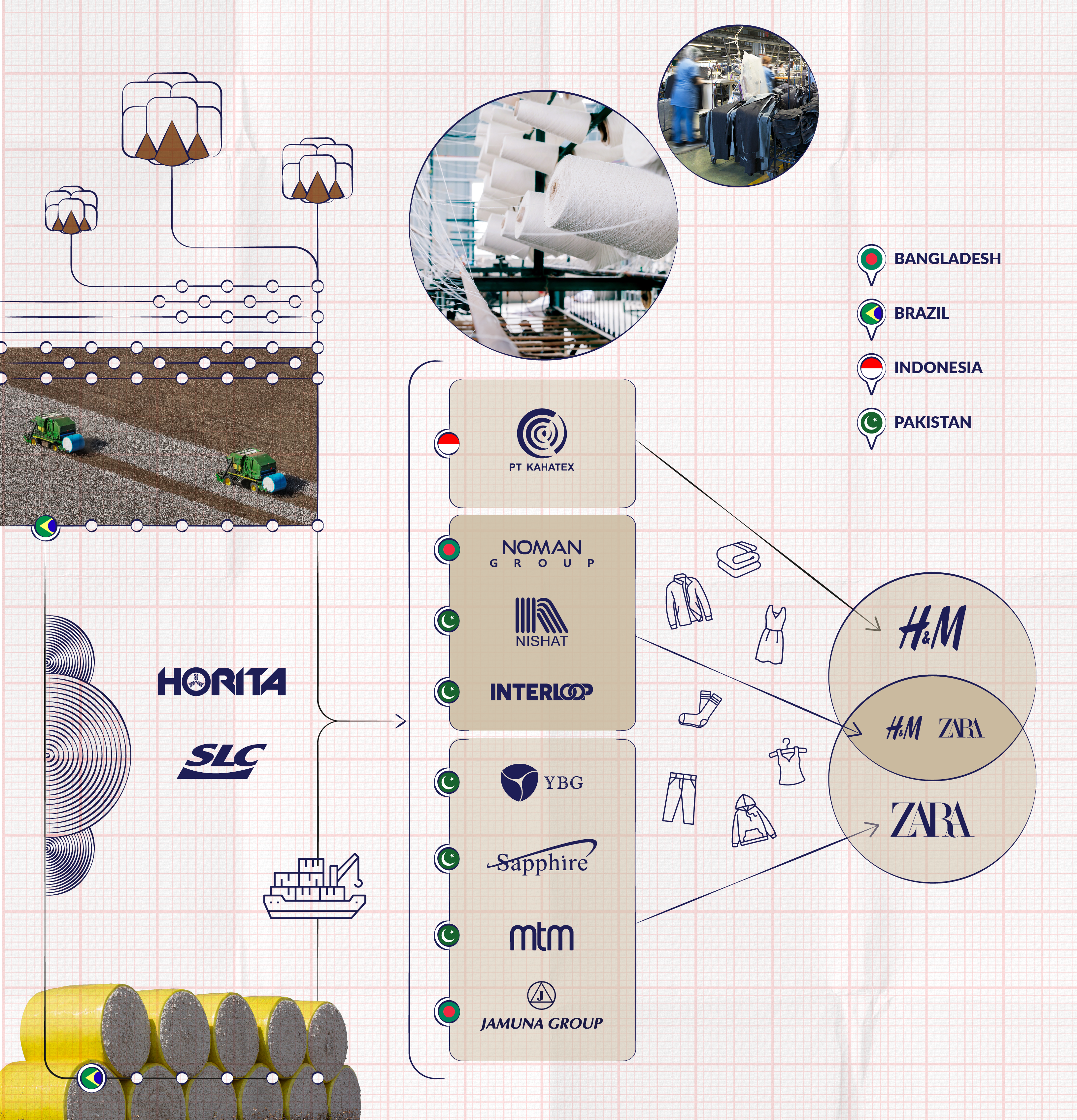 The investigation traced cotton from two Brazilian agribusinesses – Horita Group and SLC Agrícola – to clothing manufacturers in China, Vietnam, Indonesia, Turkey, Bangladesh and Pakistan. Eight of these manufacturers, including Pakistan-based Interloop, were found to be using this cotton in garments supplied to H&M and Inditex, Zara’s parent company.