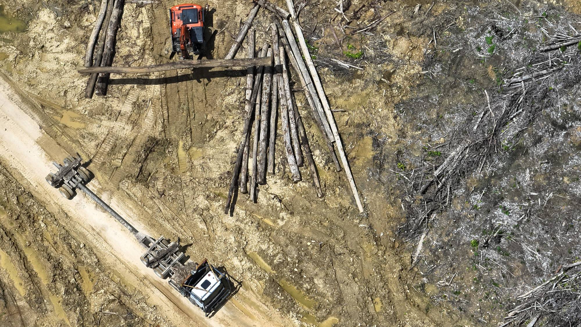 Earthsight and Auriga spent months investigating the trade, first visiting a remote corner of Borneo where vast swathes of orangutan habitat are being cleared to make way for a plantation of fast-growing timber. Where lush forests recently stood, they found barren expanses of bare earth, with heavy machinery at work transporting freshly-cut logs.