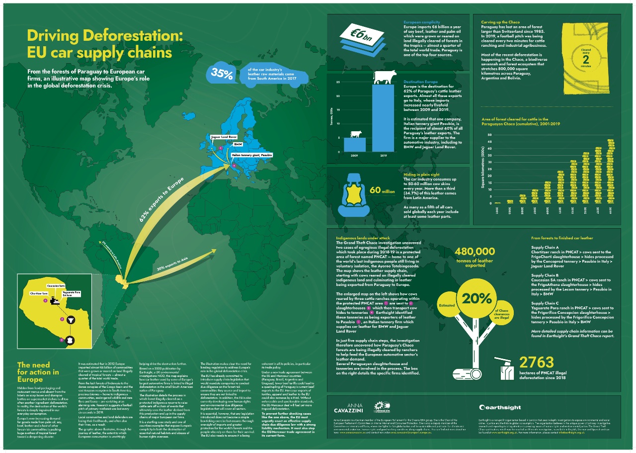 21.07.2021 Supply chain graphic shows how EU car leather helps fuel the loss of indigenous land in South America